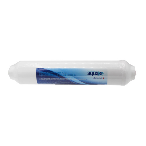 فیلتر کربن نهایی آکواجوی که در مرحله پنجم دستگاه تصفیه آب نصب میشود جزو با کیفیت ترین فیلتر های کربن نهایی موجود در بازار است. این فیلتر اورجینال و ساخت آکواجوی است. کاربرداین فیلتر در مرحله پنج دستگاه تصفیه آب و بعد از مخزن آب است.این فیلتر بوی نامطبوع و طعم تلخی آب که در اثر تصفیه ایجادشده را از بین می برد و طعم و بوی آب را عادی میکند. از این فیلتر همچنین در یخچال های ساید و سایر یخچال هایی که دارای فیلتر خارج از دستگاه هستند هم استفاده می شود. این فیلتر با داشتن کربن پایه گیاهی قوی و اثر بخش عملکردی بسیار قوی تر از حد انتظار از خود نشان می دهد. عمر مفید این فیلتر یک سال است و اتصال آن از نوع فتینگی است. نصب این فیلتر بسیار ساده و راحت است. اتصالات این فیلتر از نوع فتینگی است و برای نصب احتیاج و ابزار خاصی ندارد. این فیلتر روی تمام دستگاه های تصفیه آب قابل نصب است و روی تمام آن ها عملکرد مشابهی دارد.